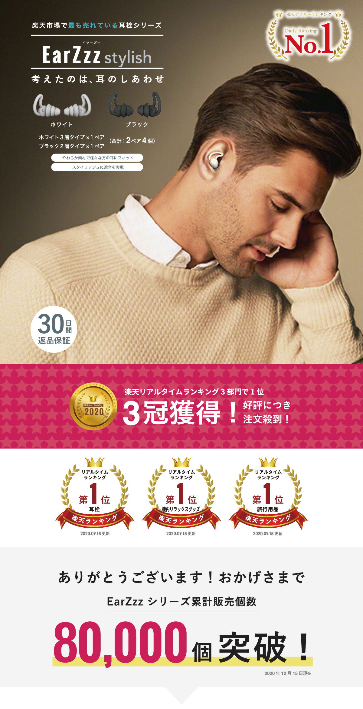 素材にもこだわり、医療用のシリコンを採用、2点・3点傘の特殊構造で耳穴に心地よくフィットします。